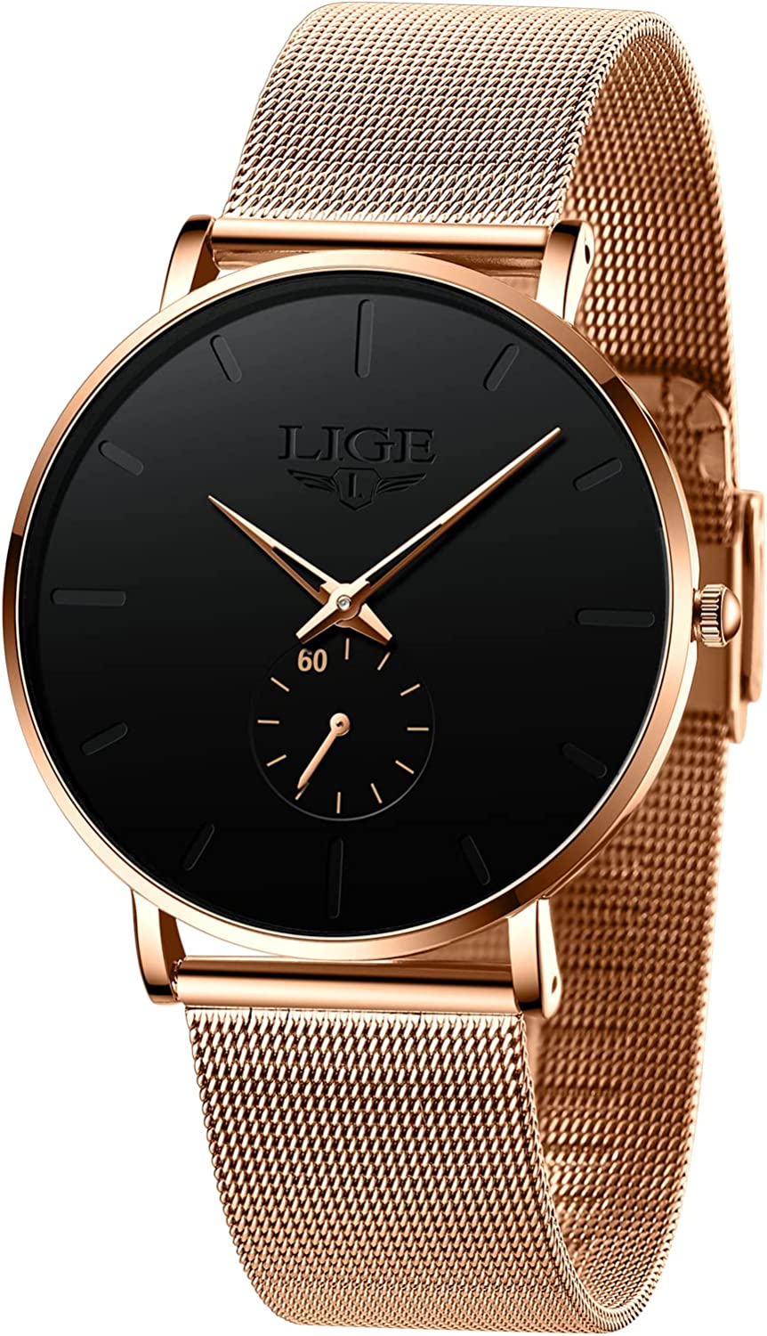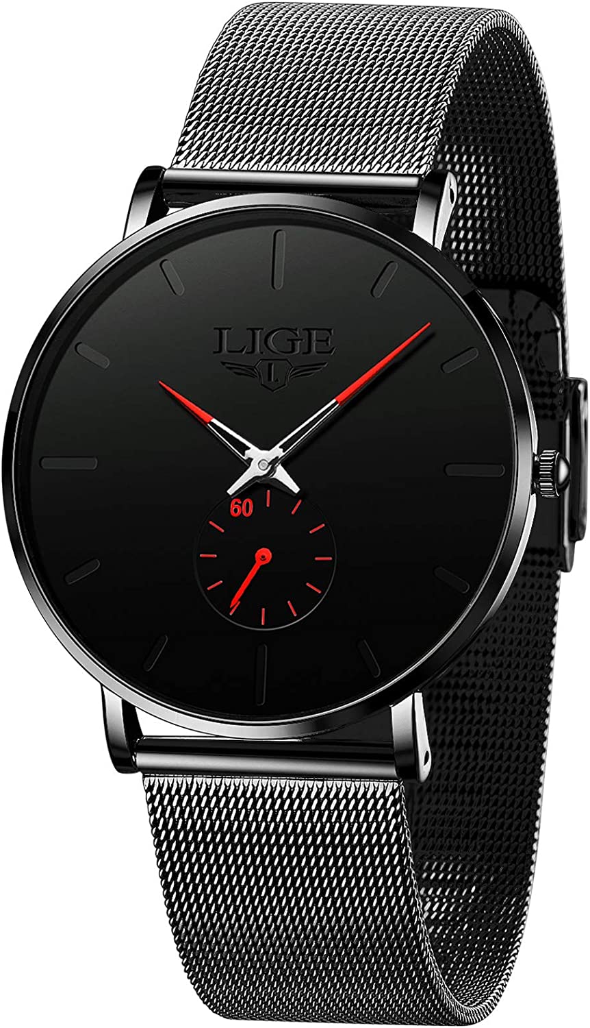 LIGE Mens Watches Ultra-Thin Analog Quartz Minimalist Stainless Steel Mesh Band Dress Watches for Men(106)
