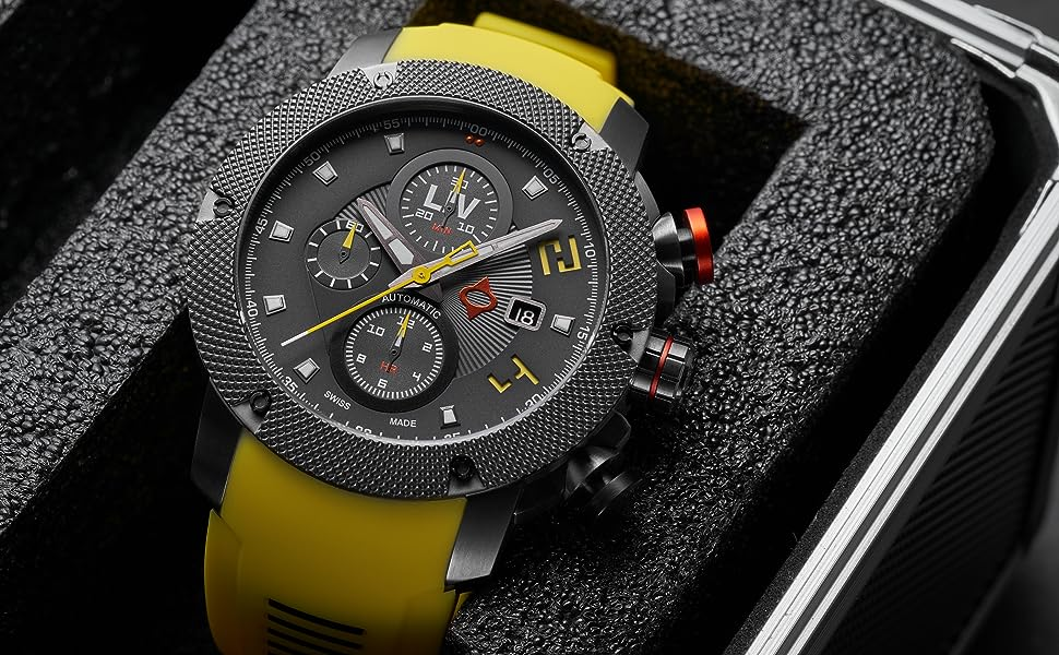 The GX-AC is the big brother to the GX1 watch, packed with features like a 25 Jewel ETA 7750 precision 12-hour Chrono and double sapphire crystal. This timepiece is for those that need a mechanical watch but love a watch that is modern and unique