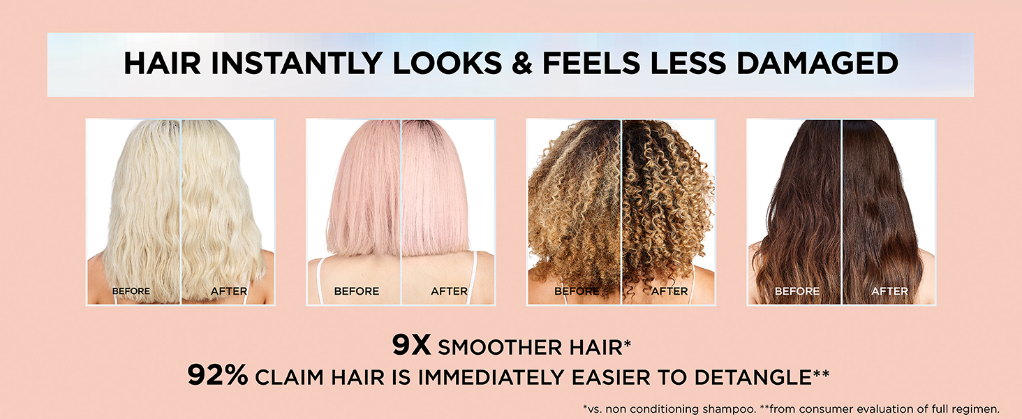 When hair is colored, bleached and damaged it can become weak from within. EverPure Bond Repair system with citric acid penetrates inside the hair cortex to rebuild weak hair bonds. Repairs hair in just one use with system. Scientifically proven to strengthen hair and reduce breakage. For smoother hair than with the number one prestige routine*.*on wet (damaged) hair in instrumental test. Leading prestige routine based on NPD full year data.