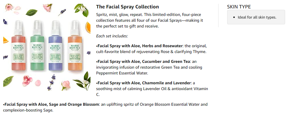 Mario Badescu Facial Spray Collection with Rose Water, Cucumber, Lavender and Orange Blossom, Multi-Purpose Cooling and Hydrating Face Mist for All Skin Types, Dewy Finish(6190)
