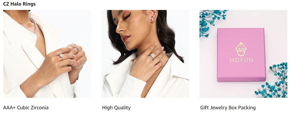 MDFUN 18K White Gold Plated Cubic Zirconia Promise Halo Engagement Promise Eternity Ring for Women(3343)