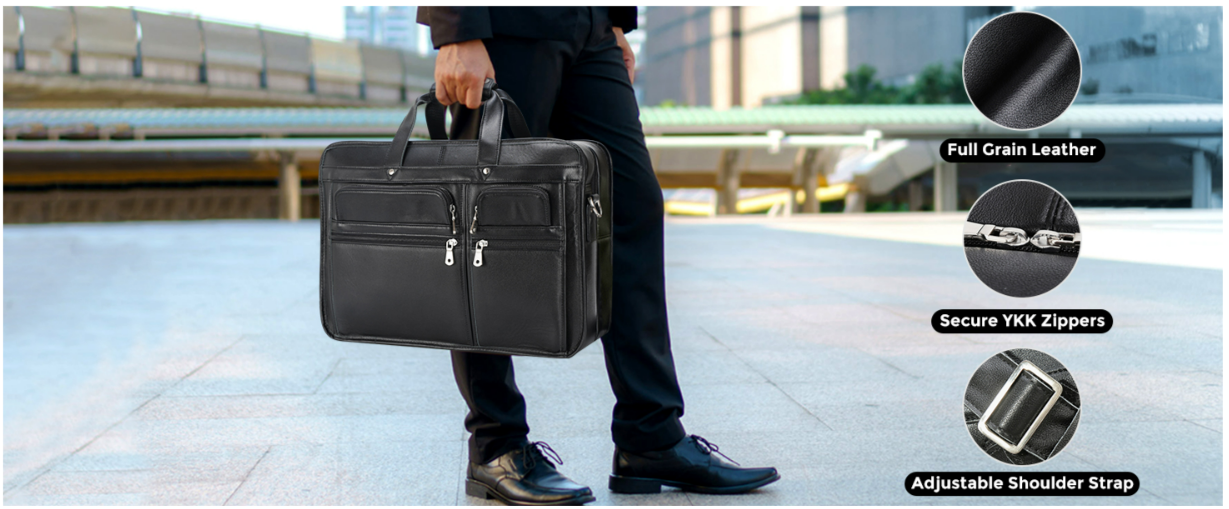 • DURABLE & ATTRACTIVE: Crafted of 100% Real Cowhide leather. Designed to age nicely, the upgraded YKK zippers, heavy duty stitching and solid hardware deliver a rugged yet modern business case for today's professional.