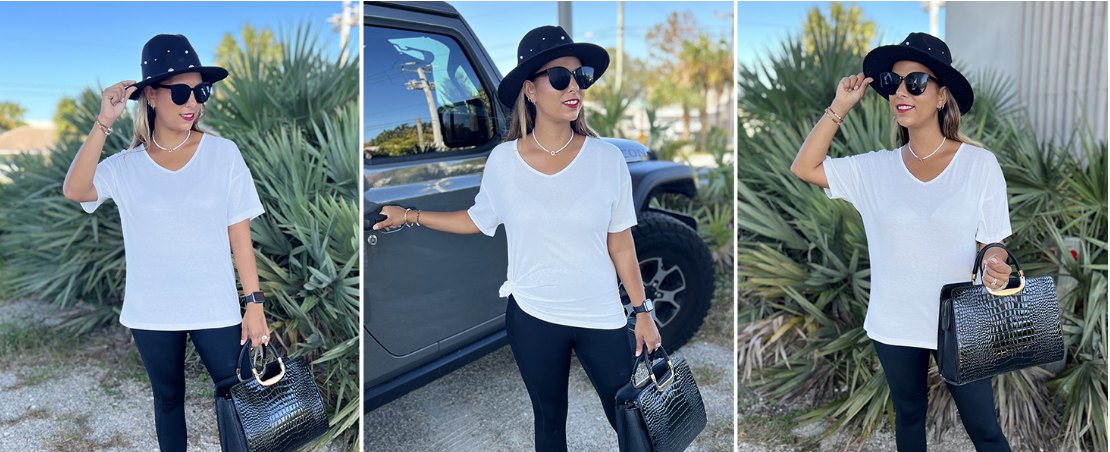 This is a stylish women's t-shirt for any season, it can be worn on its own or as a base layer under other cardigan jackets
