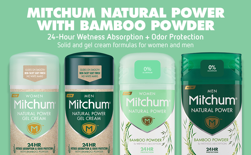 From Mitchum deodorant for women comes Mitchum Natural Power Gel Cream, an aluminum-free naturally derived odor neutralizer formulated with botanical oil extracts and powdered by bamboo power for wetness absorption. Enriched with skin-conditioning ingredients, the gentle, smooth-glide gel cream leaves skin feeling soft and moisturized—not sticky, greasy or irritated. Infused with a sweet jasmine fragrance, underarms stay dry and comfortable for 24 hours while smelling great. Formulated without added parabens, phthalates and artificial preservatives. Dermatologist tested. Vegan and cruelty free.