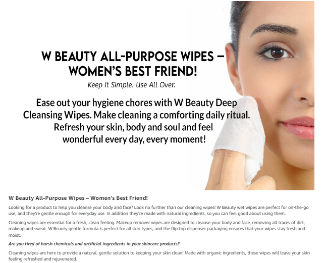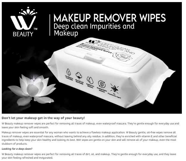 W Beauty makeup removal facial wipes clean skin deep down with a formula that's gentle to use on sensitive skin. 2 in 1 cleansing cotton wipes are not only made for removing makeup but can also be used by kids and adults for multipurpose cleaning. Simple Cleansing Wipes work on long-lasting makeup, even waterproof mascara without harsh rubbing or rinsing. Face wipes gently remove waterproof makeup, mascara, dirt, excess oil, and also cleanse the sensitive areas of the body, no matter the use is for kids or adults. Our gentle wipes can be the best butt wipes with all-natural ingredients. They effectively cleanse the skin without leaving behind a residue, to leave your skin feeling refreshed. No matter where you are or how late you're up, a clean slate at the end of the day is an essential step toward healthy, happy skin. Facial cleansing and softening ingredients are gentle enough to use twice a day to cleanse and tone your skin and leave it feeling naturally hydrated and refreshed. These makeup remover wipes are formulated without any artificial fragrance or fluorescent agent. It is perfect for cleansing on the go, so you can enjoy gentle yet effective skincare wherever you like. Makeup remover cotton wipes spunlaced non-woven has good skin affinity and high moisture permeability. Get softness, thickness, strength, and absorbency all in one with these Ultra-Soft wipes. Reveals softer smoother-looking skin. USAGE: Open packet, remove and unfold wipe. Gentle massage desired area to wipe off makeup & clean impurities. STORAGE: Store in a cool and dry place, avoid direct sunlight & high temperature. Keep it sealed to retain moisture. CAUTION: For external use only. Non-reusable. Keep out of reach of children.