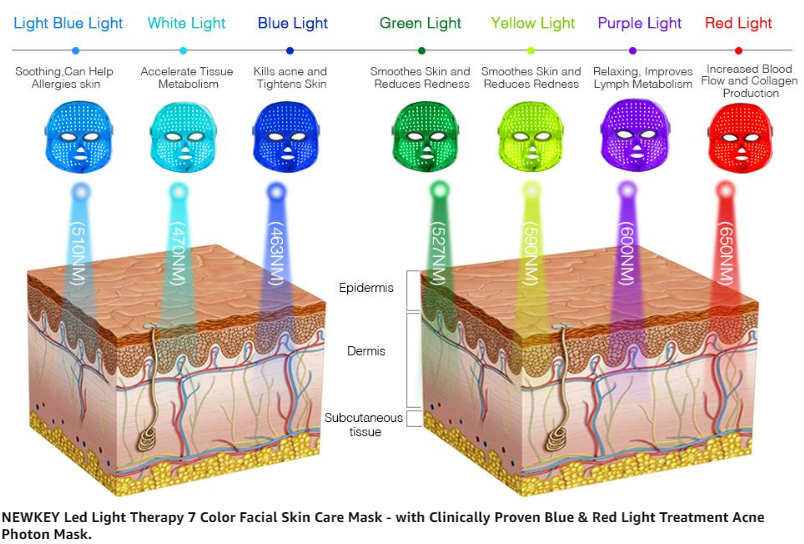 NEWKEY Led Face Mask Light Therapy, 7 Led Light Therapy Facial Skin Care Mask - Blue & Red Light for Acne Photon Mask - Korea PDT Technology for Acne Reduction(4696)