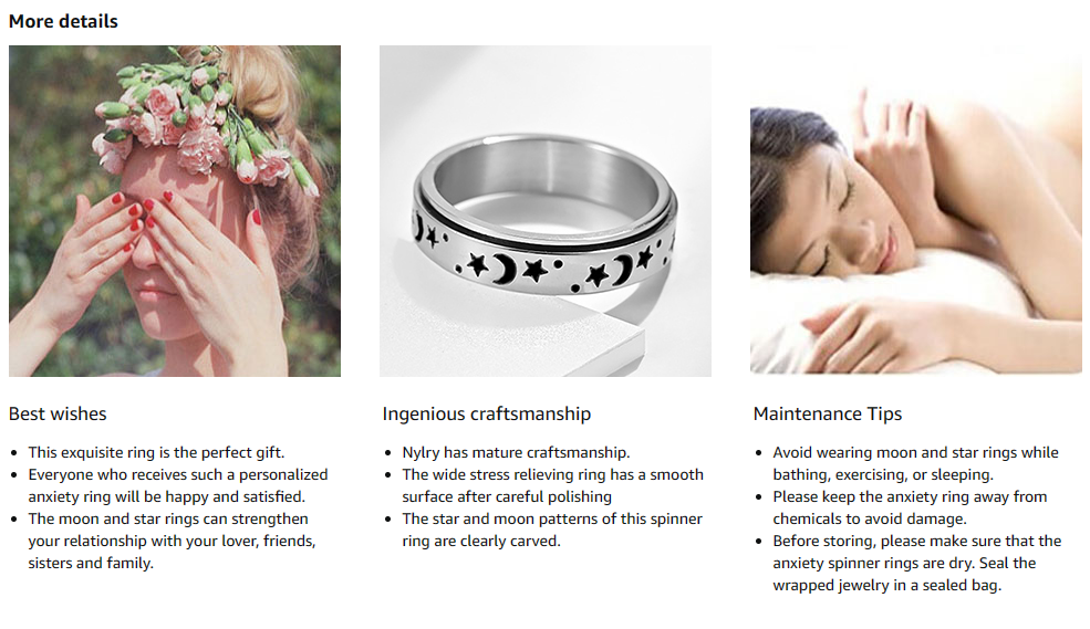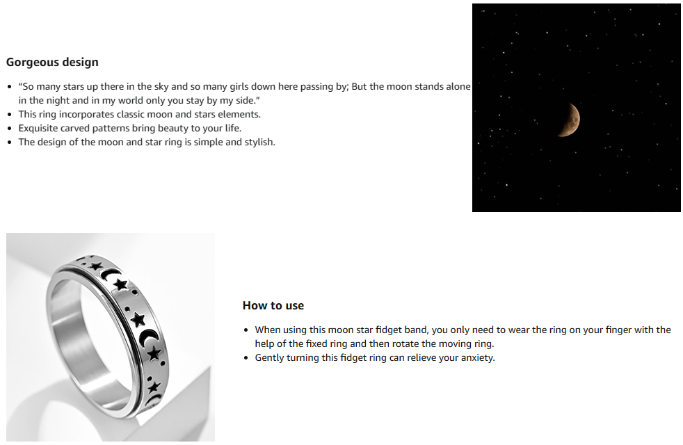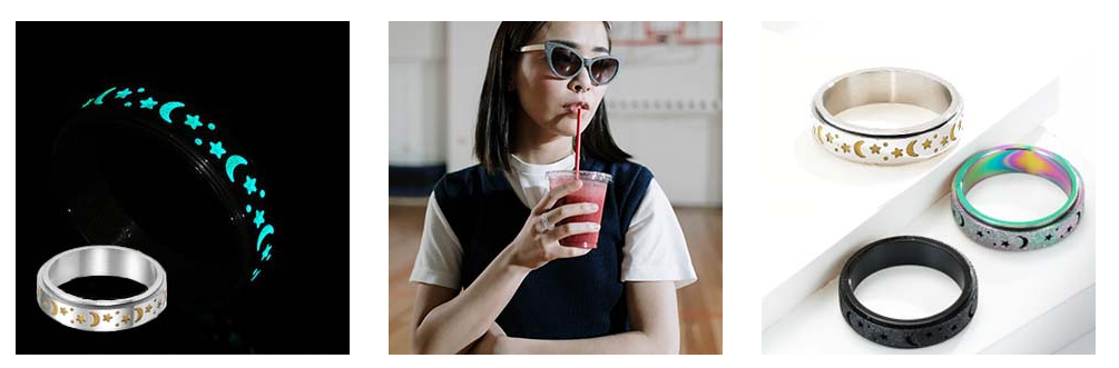 Stress relief: This spinner ring can rotate flexibly. When you feel anxious, the moon and star spinner band can help you reduce stress. Meanwhile, this anxiety band will make you more focused when studying or thinking.