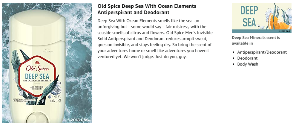 The best smells on earth are the smells that you haven't even smell yet. Whether that's true or not, it's impossible to prove us wrong, so don't even try. That's why we sought the freshness of the deep sea, one of the remotest places on Earth. It really makes you wonder if anyone has smelled the bottom of the sea before. Deep Sea with Ocean Elements smells like the sea: an unforgiving but-some would say-fair mistress, with the seaside smells of citrus and flowers. Old Spice Men's Invisible Solid Antiperspirant and Deodorant reduces armpit sweat, goes on invisible, and stays feeling dry. So bring the scent of your adventures home or smell like adventures you haven't ventured yet. We won't judge. Just do you, guy.