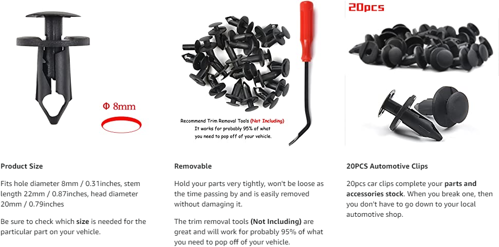 【Notice】Even though the product description states they will fit your vehicle, measure the diameter of the space the fastener is going into before ordering these clips