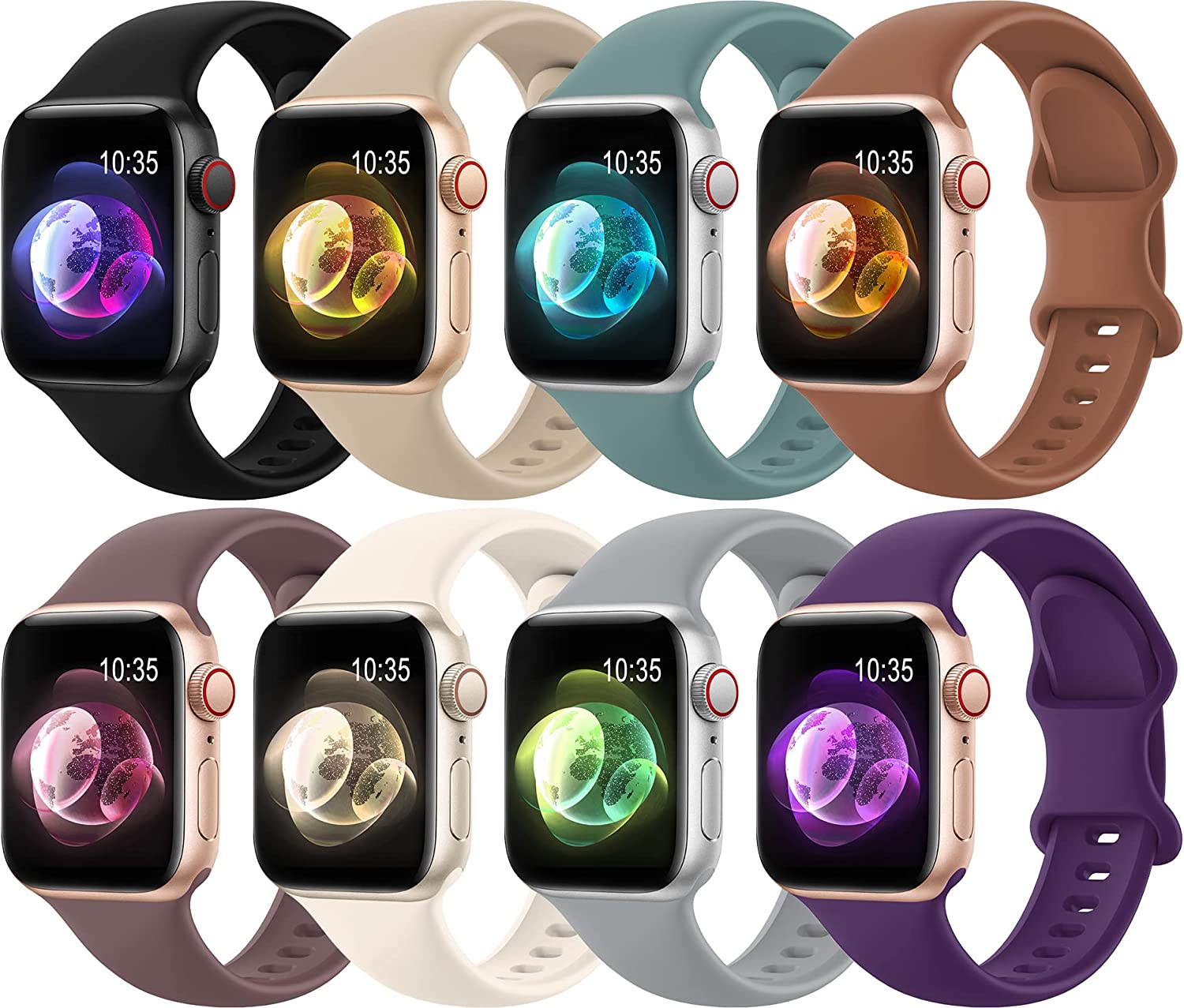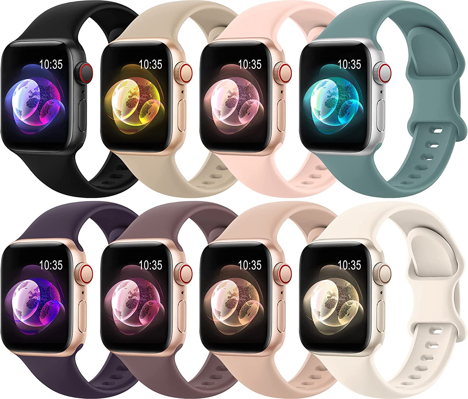 OYODSS 8 Pack Bands Compatible with Apple Watch Band 38mm 40mm 41mm 42mm 44mm 45mm 49mm Women Men, Soft Silicone Sport Strap for iWatch Ultra SE Series 8 7 6 5 4 3 2 1(3143)