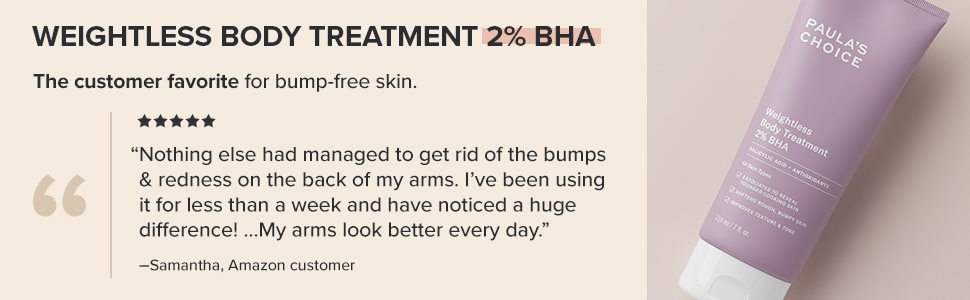 SOFTENS ROUGH SKIN WITH 2% BHA: This full-body treatment is formulated to soften and smooth skin with the combined powers of 2% Salicylic Acid (BHA) and nourishing, non-fragrant plant extracts. Gently exfoliates dead skin cells to reveal skin that's noticeably softer, smoother, and bump-free.