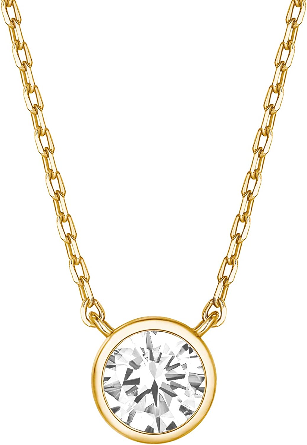 PAVOI 14K Gold Plated 1.00 ct (D Color, VVS Clarity) CZ Simulated Diamond Bezel-Set Solitaire Choker Necklace | Necklace for Women(3078)