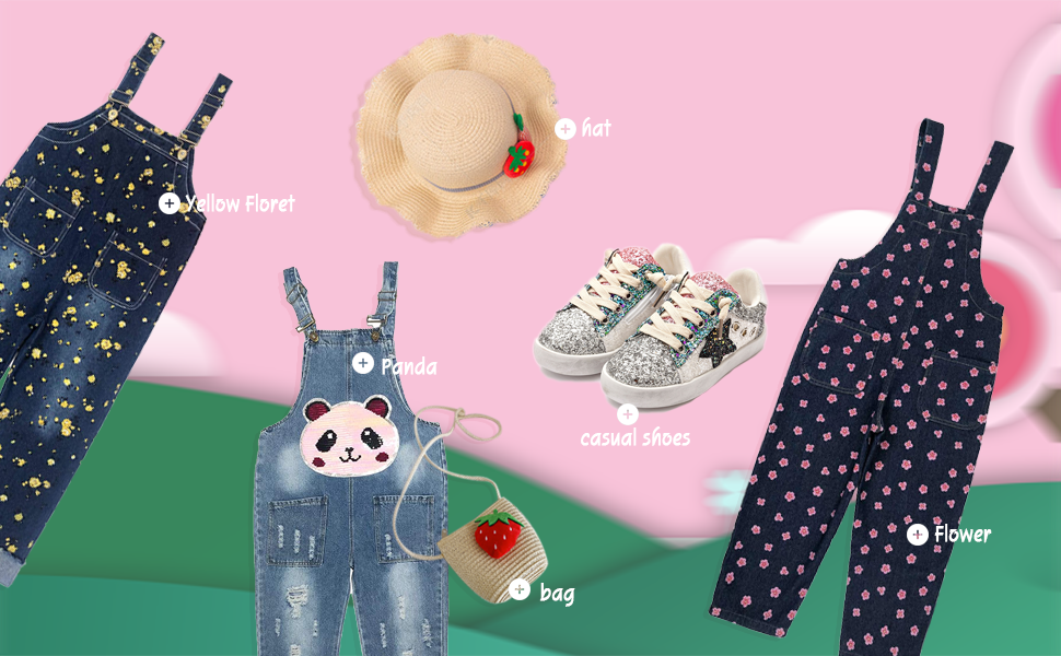 Loose little girl's one-piece workwear, a variety of styles are available, it is recommended to start with panda