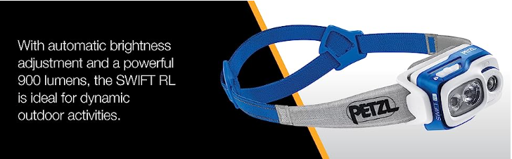 Weighing just 100g and providing up to 900 lumens of light, SWIFT RL is one of Petzl’s most powerful headlamps. It features REACTIVE LIGHTING technology that automatically adjusts the brightness, letting you focus on the activity. Its 2-part headband provides excellent stability for dynamic and intense activities such as trail running, skiing and mountaineering. SWIFT RL is rechargeable, easy to use, locks when not in use and features a reflective headband for nighttime visibility.