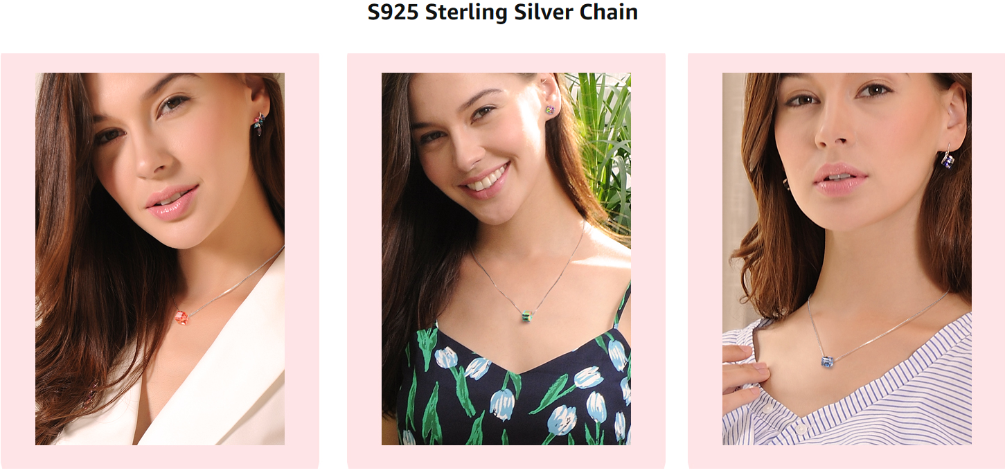 MATERIAL & SPECIFICATIONS S925 sterling silver chain and crystal.pendant height:0.98 inch,width:0.69 inch,item Weight:0.24 ounce;High quality S925 Sterling Silver 18"(46cm) and 2"(9cm) Extended adjustable Chain.