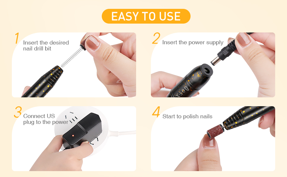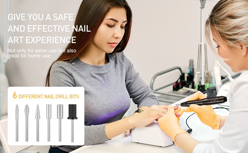 Professional Nail Drill Set : The sets with 6 different drill bits, 106 sanding bands, 1 nail brush. It is can be used for manicure, pedicure, polishing and removing excess cuticles, or pets nail beauty and so on. Good choice for both home and salon use.
