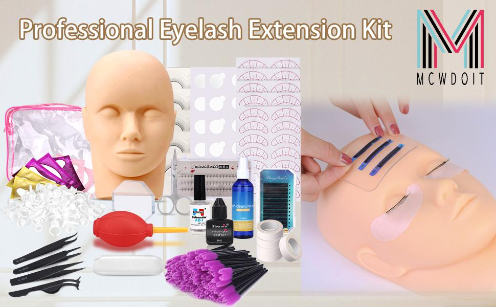 Pro 335Pcs Lash Eyelash Extension Kit, Mcwdoit Professional Lash Practice Kit with Flat Mannequin Head, Training Makeup Eye Lashes Grafting(6183)