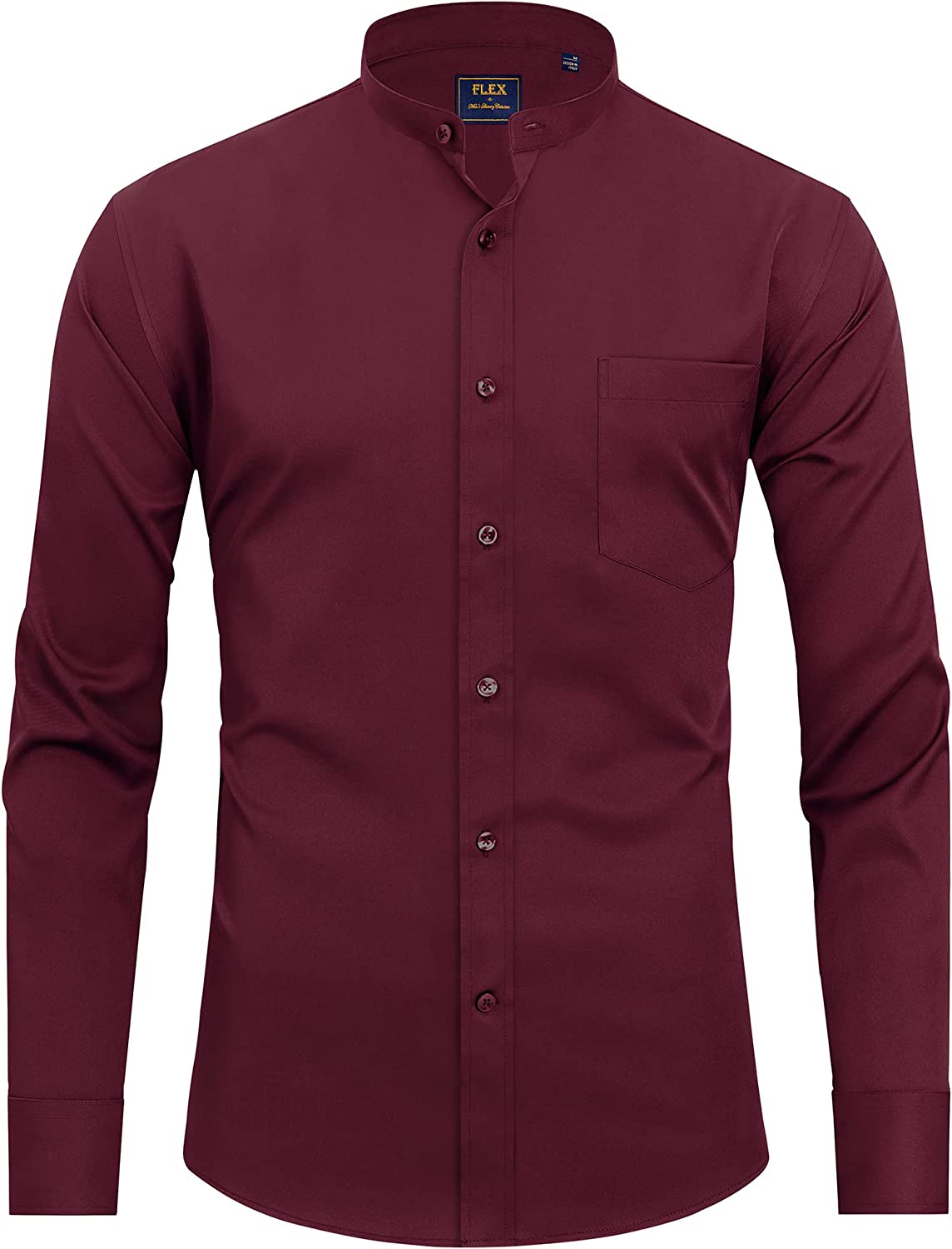 J.Ver Mens Banded Collar Dress Shirts Long Sleeve Button Down Mandarin Collar Shirt Solid Stretch Shirt with Pocket