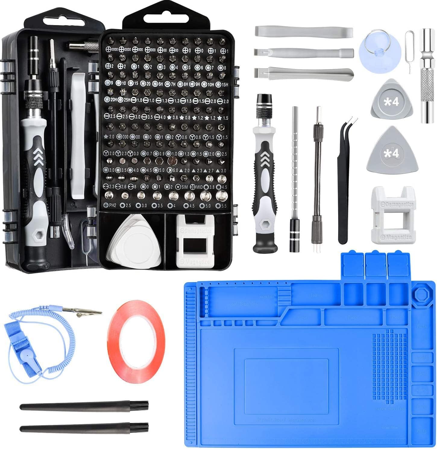 Precision Screwdriver Set Computer Repair Kit, 128 In 1 DIY Repair Tools with Anti Static Mat, ESD Wrist Strap, Magnetic Screw Driver Kit for Phone/Mac/Pad/Laptop/PC/Xbox/PS4/Nintendo Switch/Watch