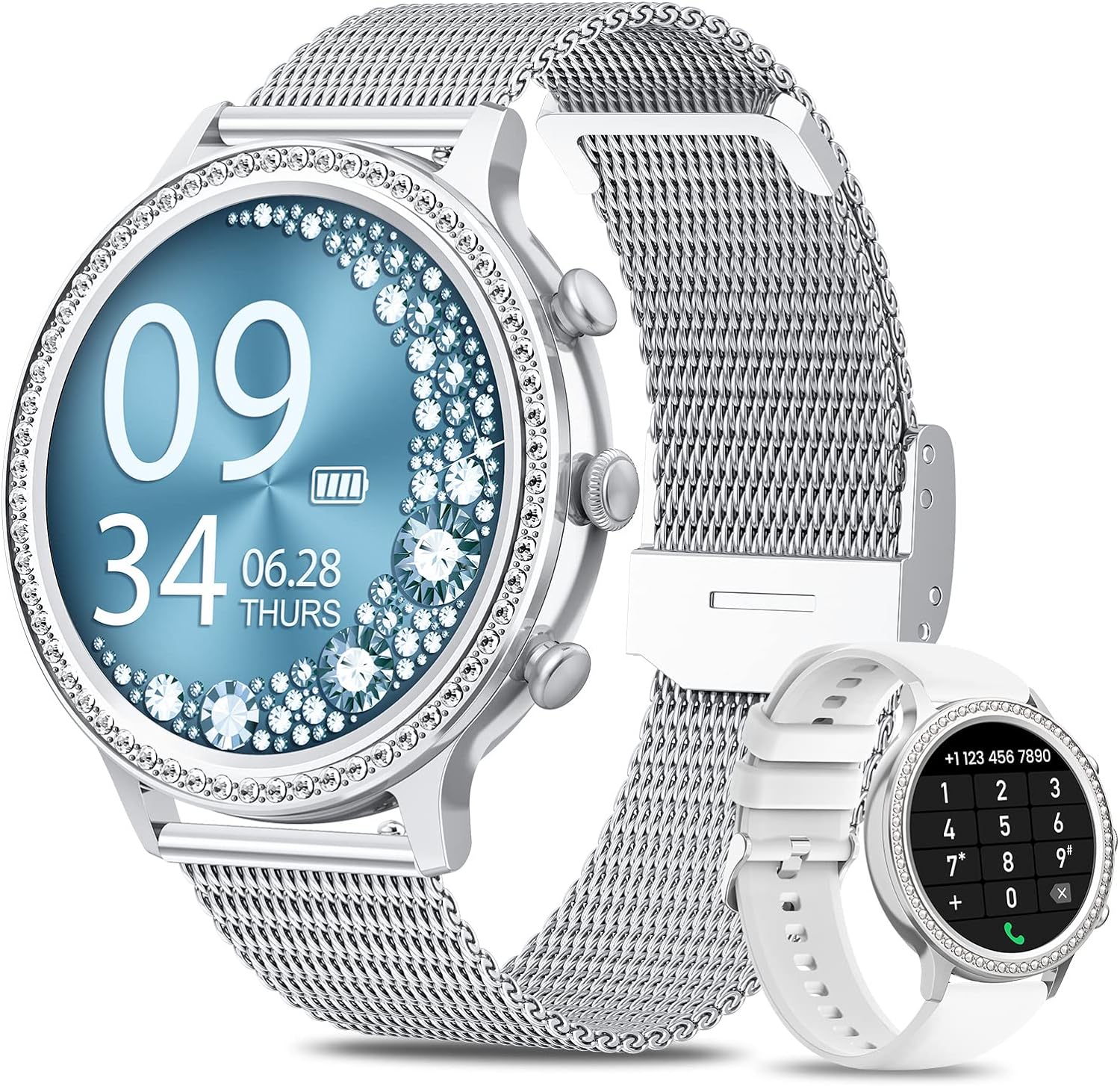 Smart Watches for Women with Diamonds (Answer/Make Call), 1.32'' Bluetooth Smartwatch for Android Phones, Fitness Tracker with Heart Rate, Blood Oxygen, Sleep Monitor, Pedometer, Best Gifts Gold