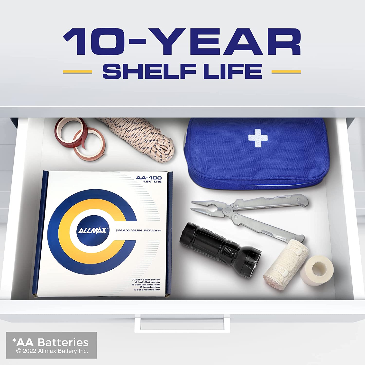 Allmax AA Maximum Power Alkaline Double A Batteries (100 Count) – Ultra Long-Lasting, 10-Year Shelf Life, Leakproof Design, 1.5V