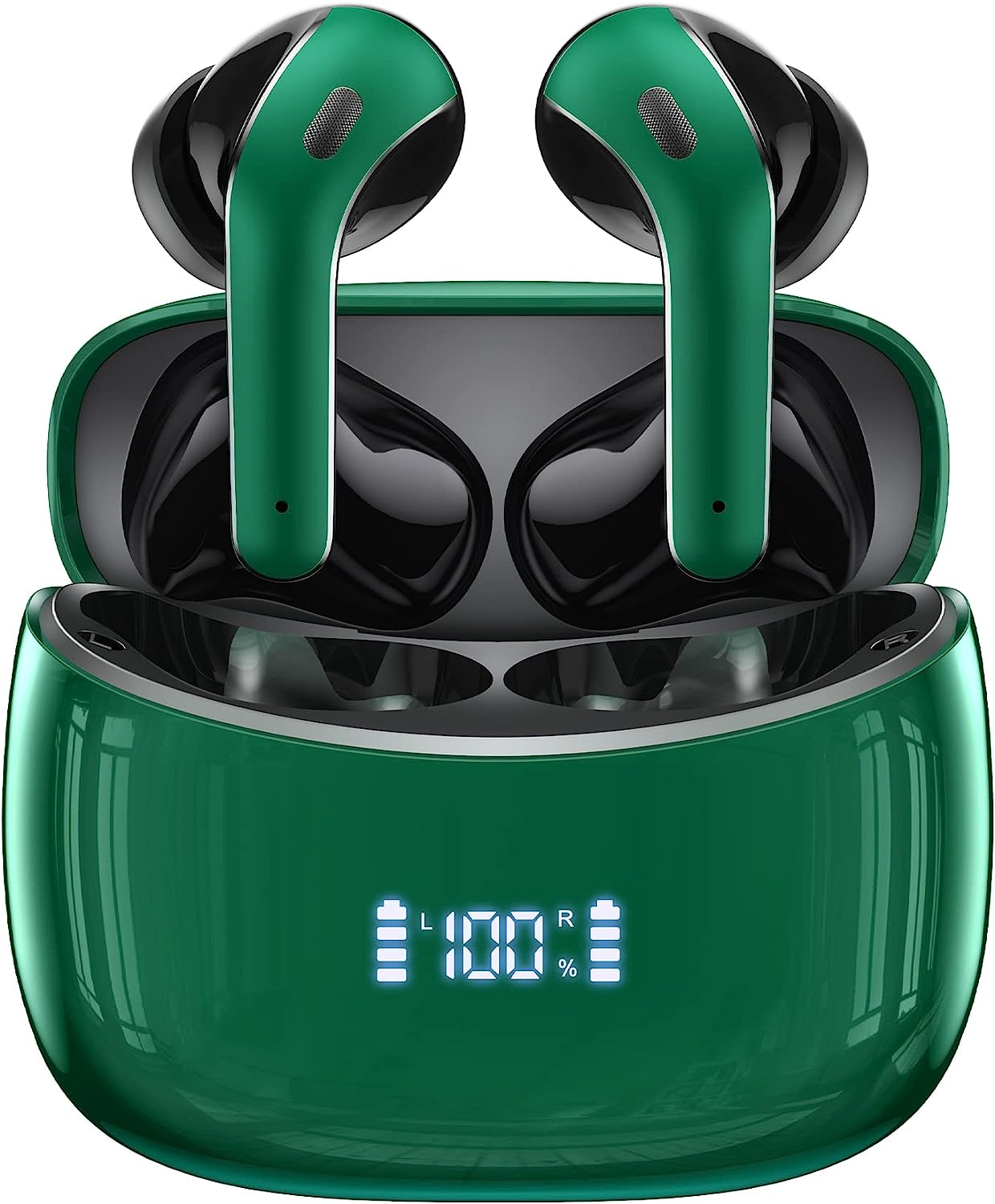 Wireless Earbuds Bluetooth Headphones 60H Playtime Ear Buds with LED Power Display Charging Case Earphones in-Ear Earbud with Microphone for Android Cell Phone Gaming Computer Laptop Sport Green