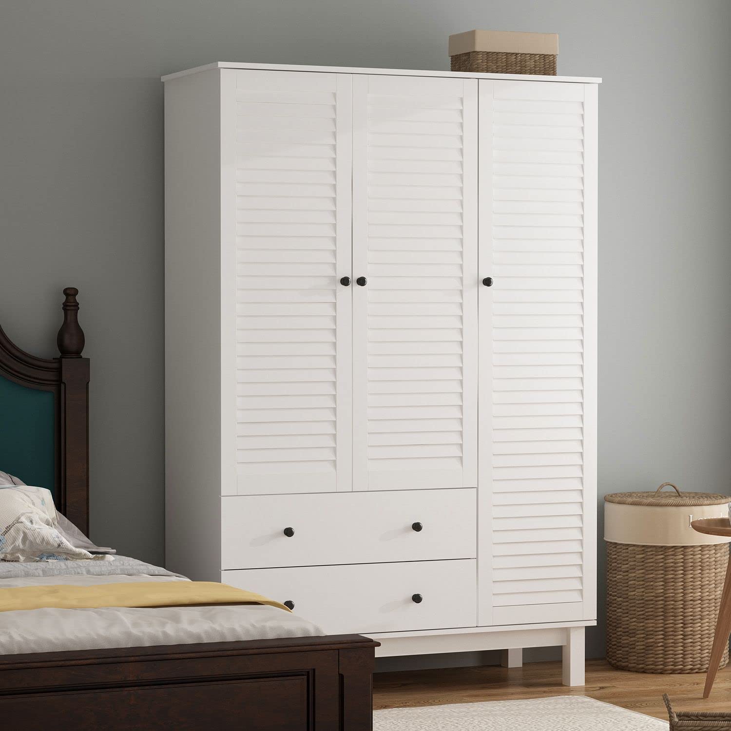 DiDuGo Bedroom Armoire with Large Storage, Armoire Wardrobe Closet with Drawers & Shelves and Shutter Doors, Wooden Legs, Black Handles, for Bedroom White (48”W x 20.2”D x 71”H)