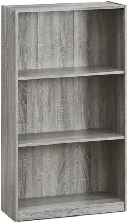 Furinno Basic 3-Tier Bookcase Storage Shelves, French Oak Grey