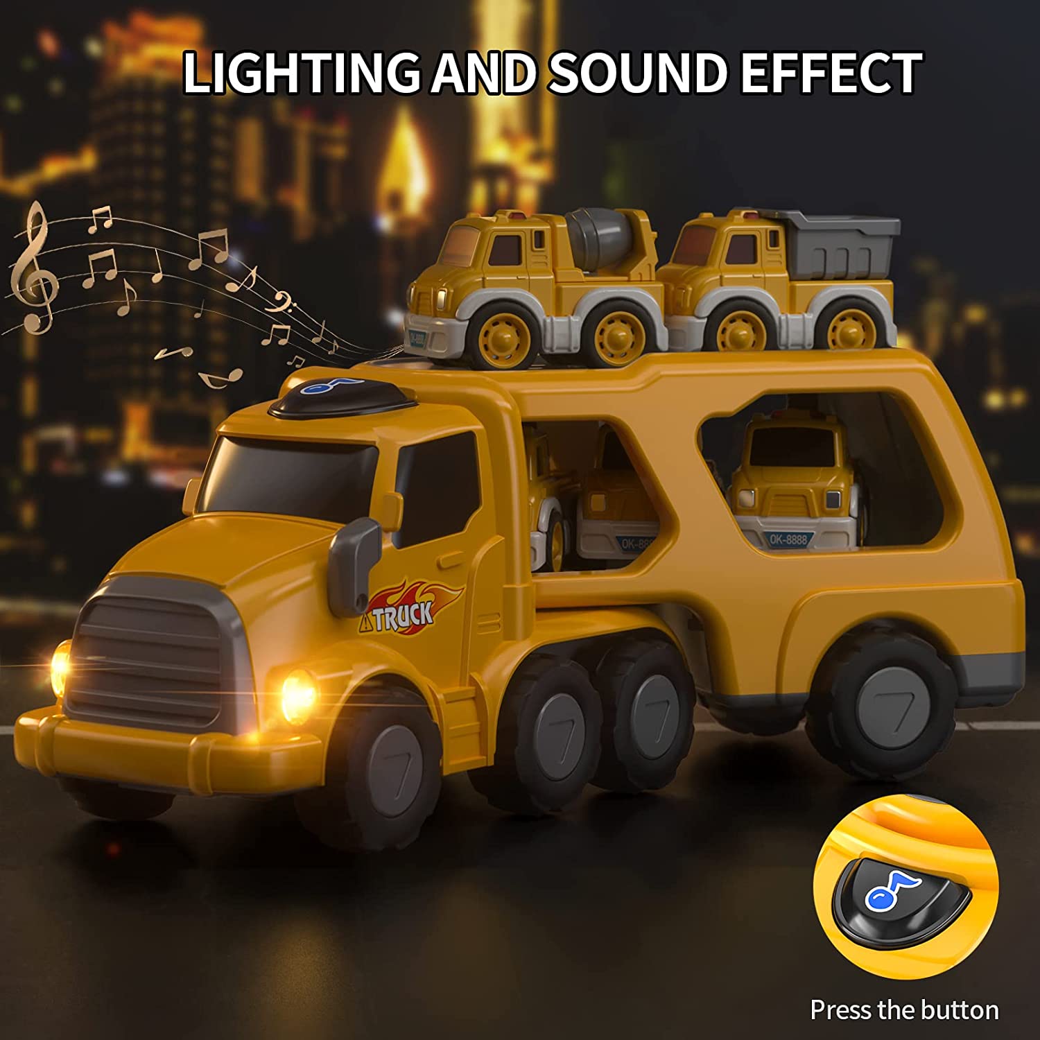 TEMI Construction Trucks Toddler Boy Toys Cars for Toddlers 1-3 - 7-in-1 Kids Toys for 3 4 5 6 Years Old Boys Transport Vehicle Carrier Truck, Car Toys Set for Age 3-9, Christmas Birthday Gifts