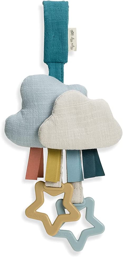 Itzy Ritzy Bitzy Bespoke Jingle Travel Toy for Stroller, Car Seat or Activity Gym; Features Jingle Sound, Hexagon Rings and Adjustable Attachment Loop, Cloud