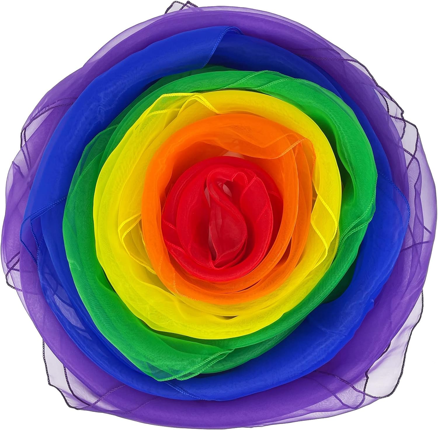 Lolakee Dance Scarves for Kids Play 12 Pcs Upgraded Play Scarves for Babies Toddlers Children Movement Square Juggling Silk Music Dancing Scarf Rhythm Band Scarves Pro (6 Colors,24" x 24")