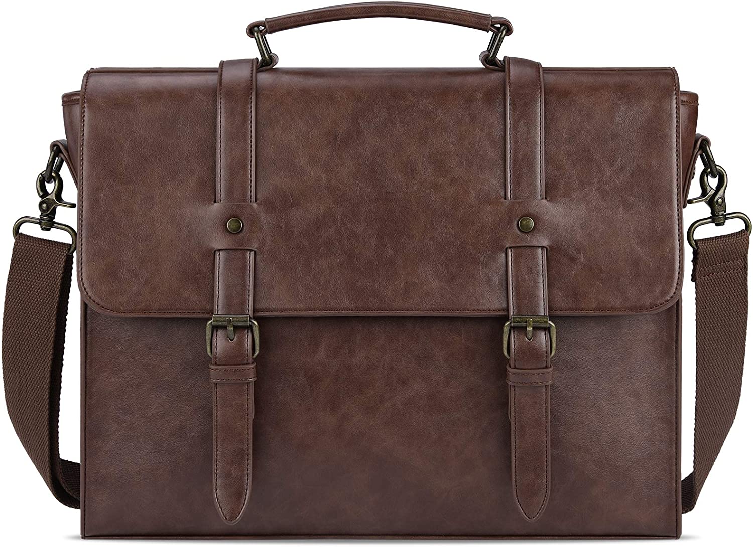 seyfocnia Mens Laptop Bag,15.6 Inch Leather Messenger Bag Water Resistant Business Travel Briefcase, Work Computer Bag Satchel Bag Husband Gifts(Brown