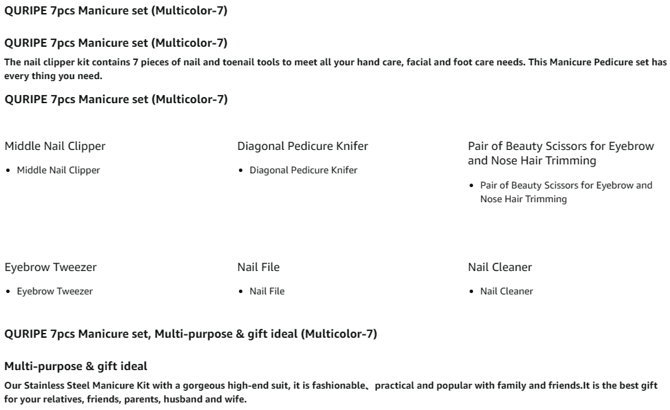 QURIPE 7pcs Manicure set, Nail Clippers Kit, Stainless Steel Manicure Kit, Nail Clipping Tools Portable Travel Grooming Kit, The Best Gift with Luxurious Case(Multicolor)(6203)
