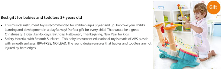 Best Gift for Babies and Toddlers- This musical instrument toy is recommended for children ages 12 months and up. Enhance your child's learning and development in a fun way! Perfect present for any child. That would be a great Christmas Gift Idea as Holidays, Birthday, Halloween, Thanksgiving, New Year for children