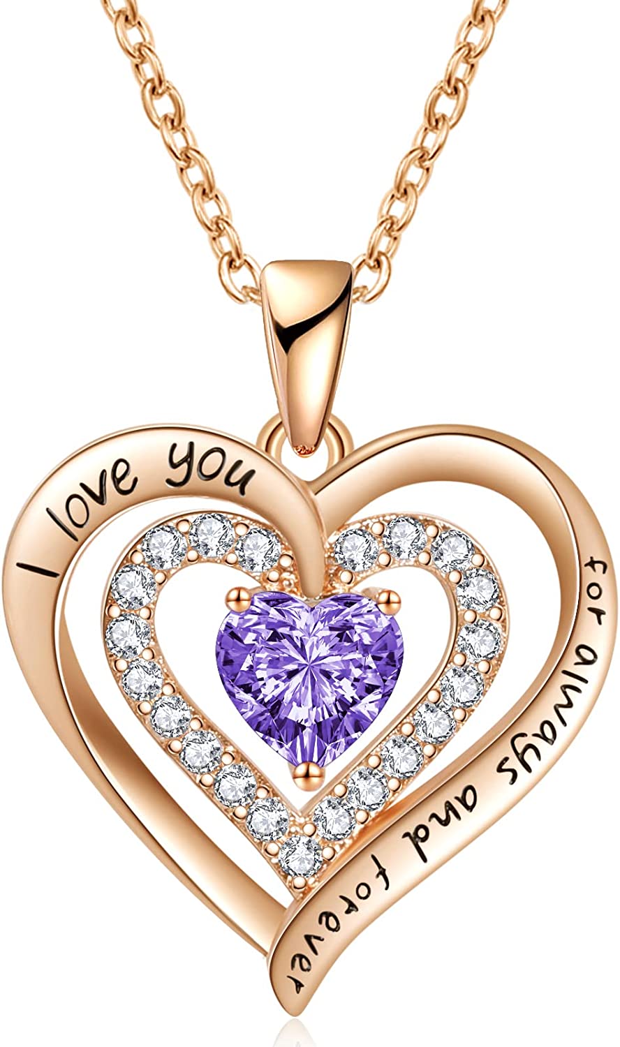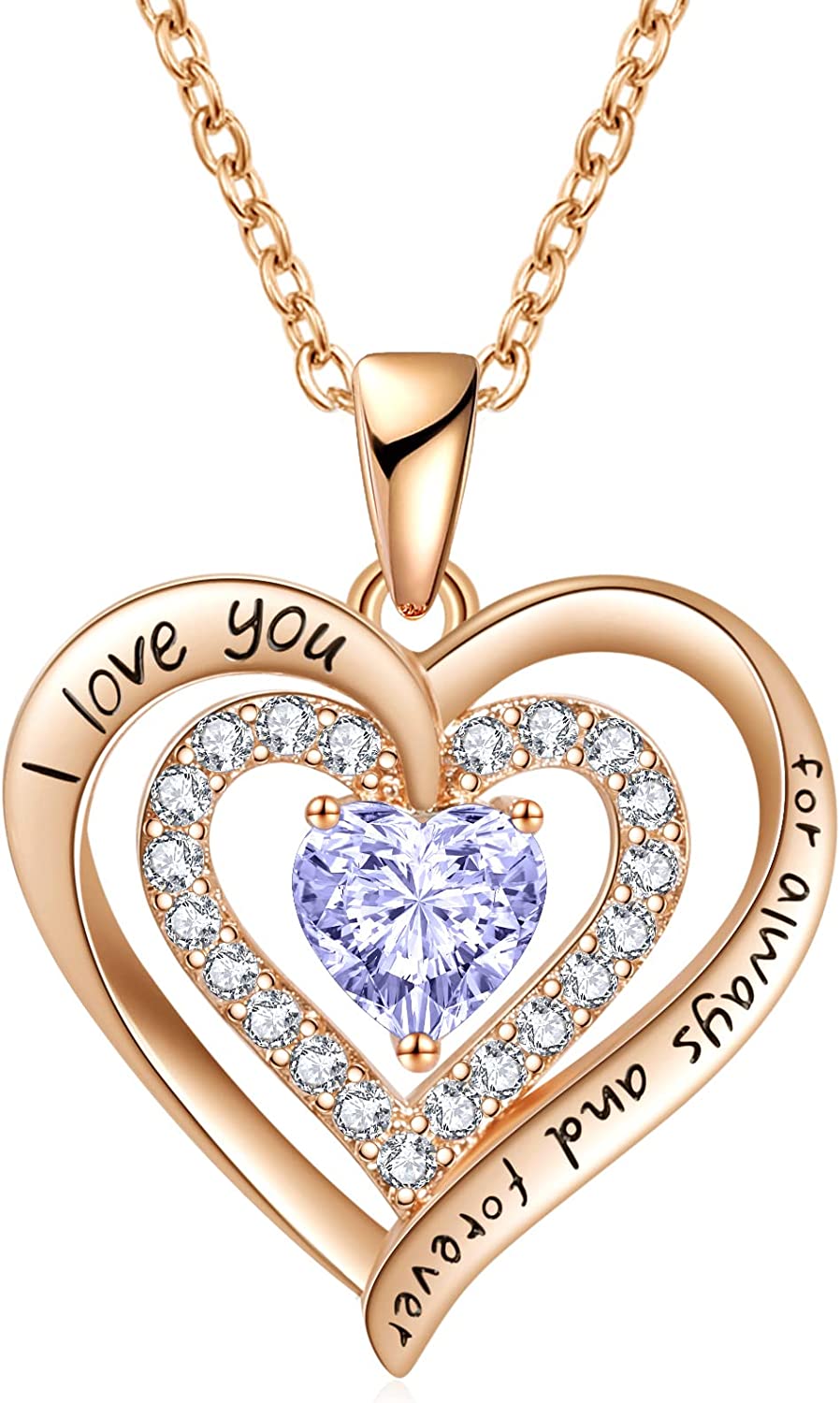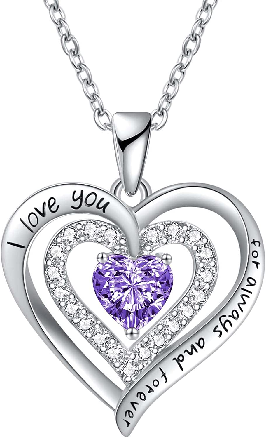 REDBEE sparkling birthstone necklace makes a heartwarming jewelry gifts for wife or gifts for girlfriend. Given as a birthday gift or an anniversary gift, the lettering of “I love you for always and forever” on the double heart necklace will make her feel special and loved.