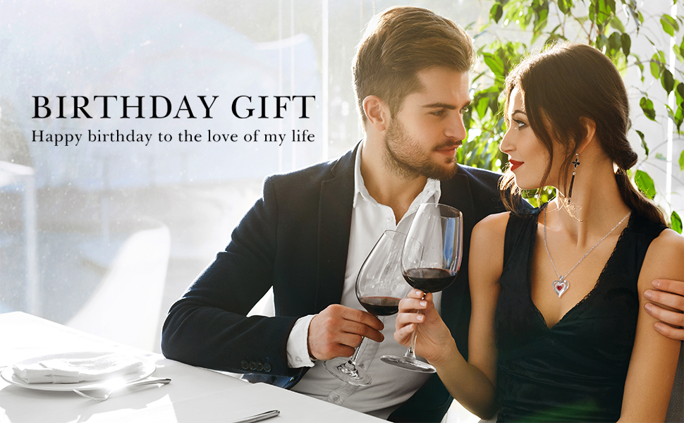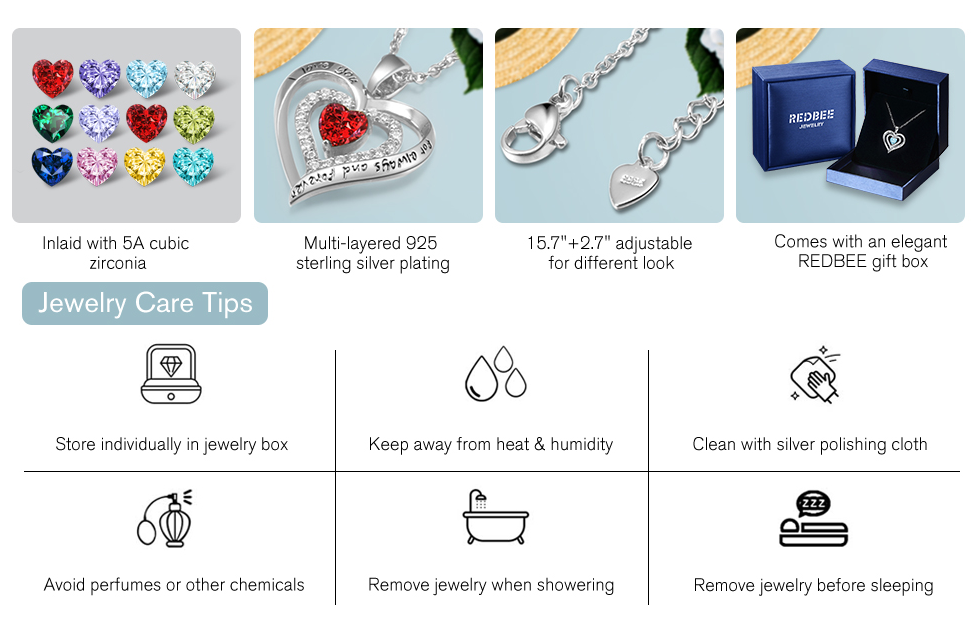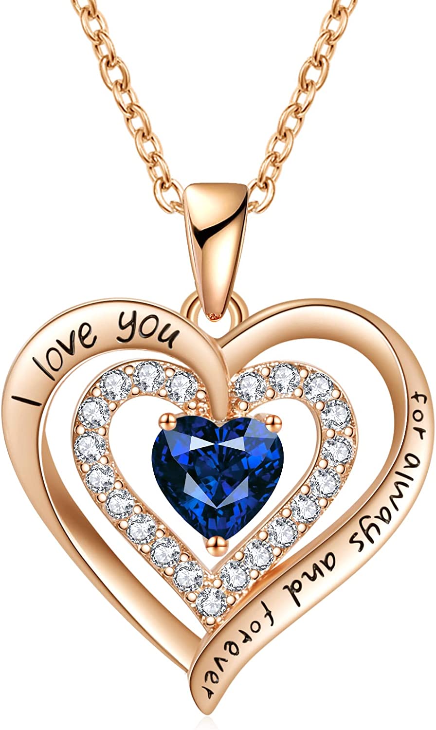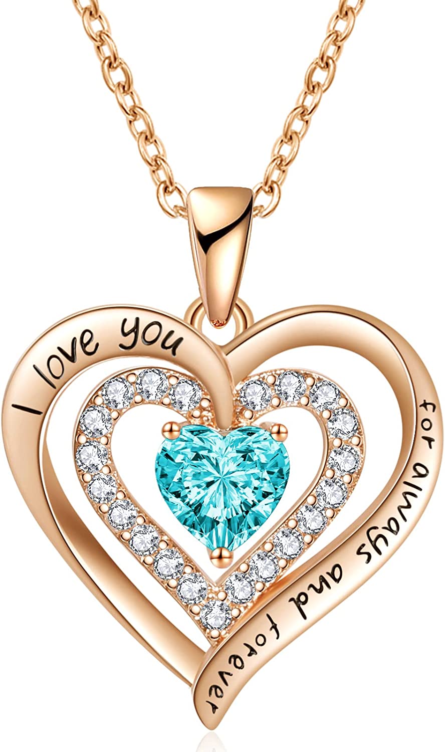 REDBEE sparkling birthstone necklace makes a heartwarming jewelry gifts for wife or gifts for girlfriend. Given as a birthday gift or an anniversary gift, the lettering of “I love you for always and forever” on the double heart necklace will make her feel special and loved.