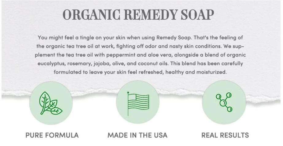 Made in the USA: TruRemedy's 12 ounce Remedy Soap Body Wash is a powerful odor eliminator that helps with acne as well as other skin irritations including athlete's foot, candida, ringworm, jock itch, foot odor, and toenail issues