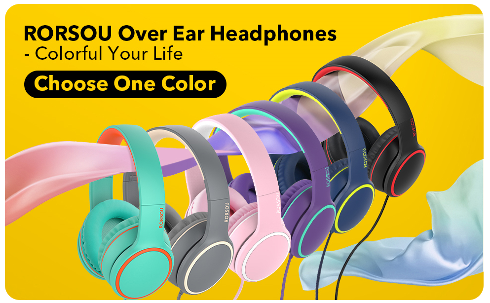 • RORSOU R10 headphones with microphone in bright colors are built meticulously with strong and sturdy plastic for long-lasting resilience and durability. Premium 4.9 ft (1.5m) nylon braiding cord doesn’t tangle or kink, suitable for adults and Children. Lightweight and foldable design make these wired headphones easy to put into your package and take along anywhere.