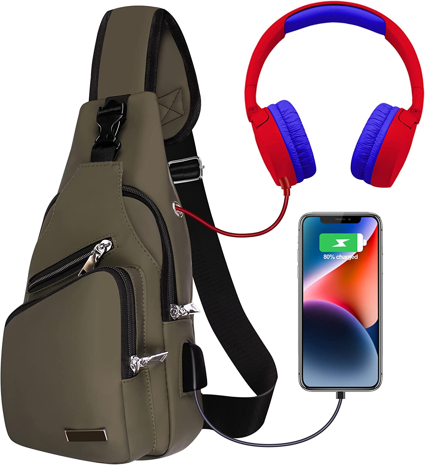 Sling Bag Crossbody Backpack for Women Men Chest Bag Hiking Bag with USB Charging Port for Camping Biking Travel Cycling(3996)