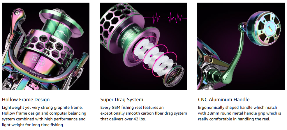 Sougayilang GSM fishing reel have been fully upgraded on the basis of the previous generation of the LY colorful fishing reels, with a more eye-catching appearance and more powerful performance. The eye-catching appearance brings you a different fishing mood that will look great on any rod you own.The “Colors” spinning reels deliver dependable performance coupled with unbeatable value and eye-catching cosmetics to show angler's attitude and personality.