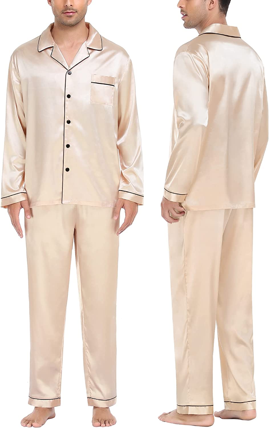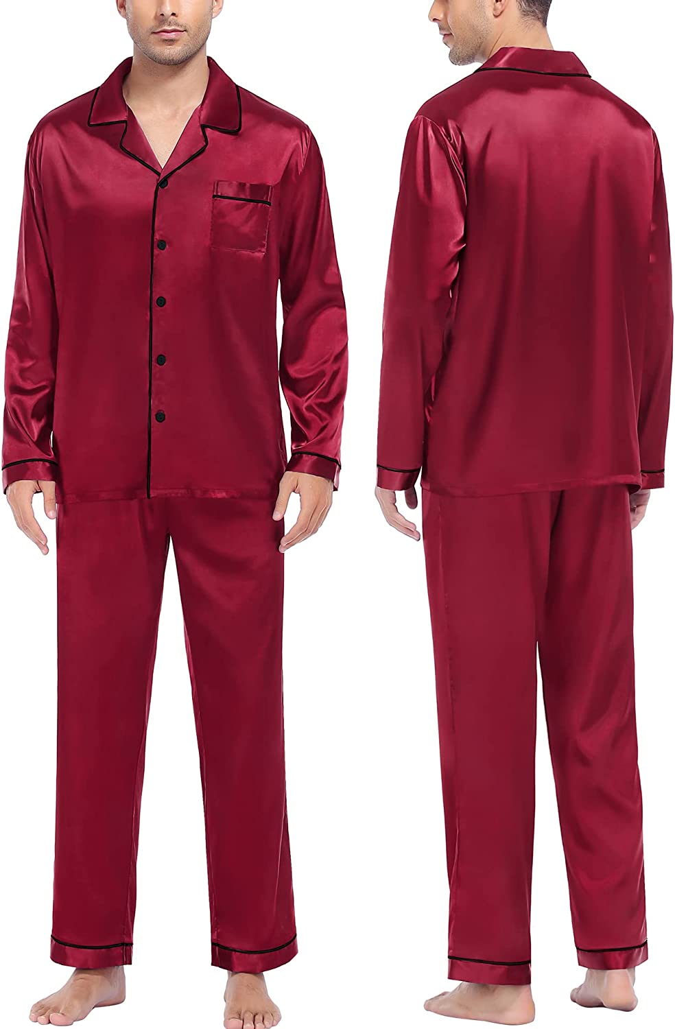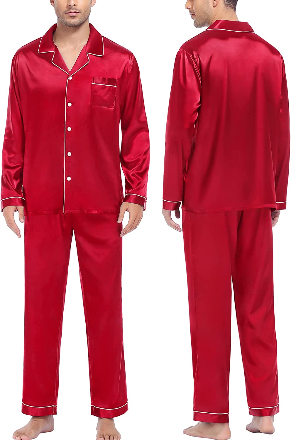• OCCASION & BEST GIFT: Nicely tailored Satin Pajama sets are perfect for sleep, wedding, pajama party, and loungewear, or take a free walk in the park. On Halloween, Thanksgiving Day, Christmas, Father's day, a pajama set is the perfect present for your dad, husband, son, or boyfriend