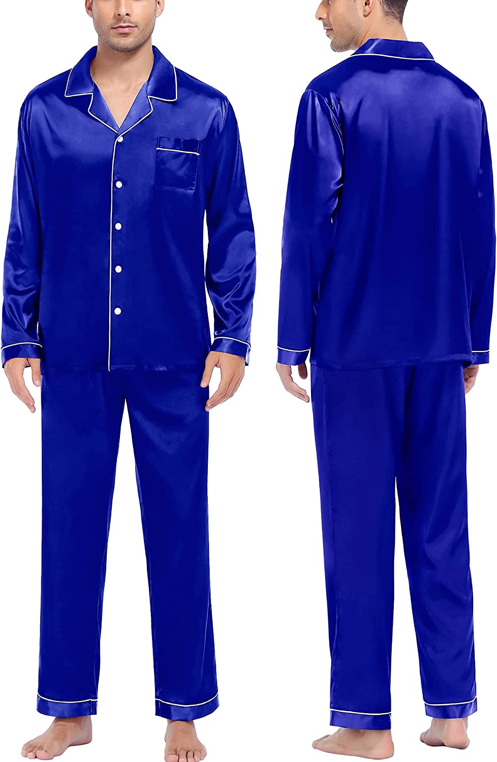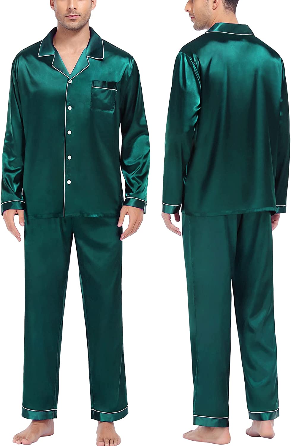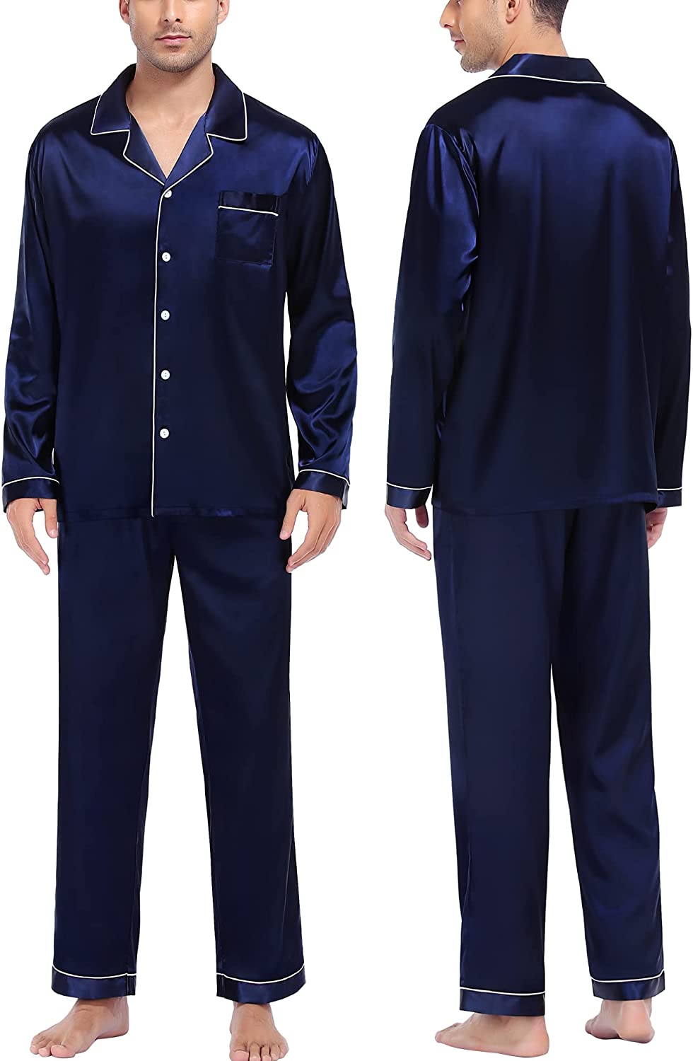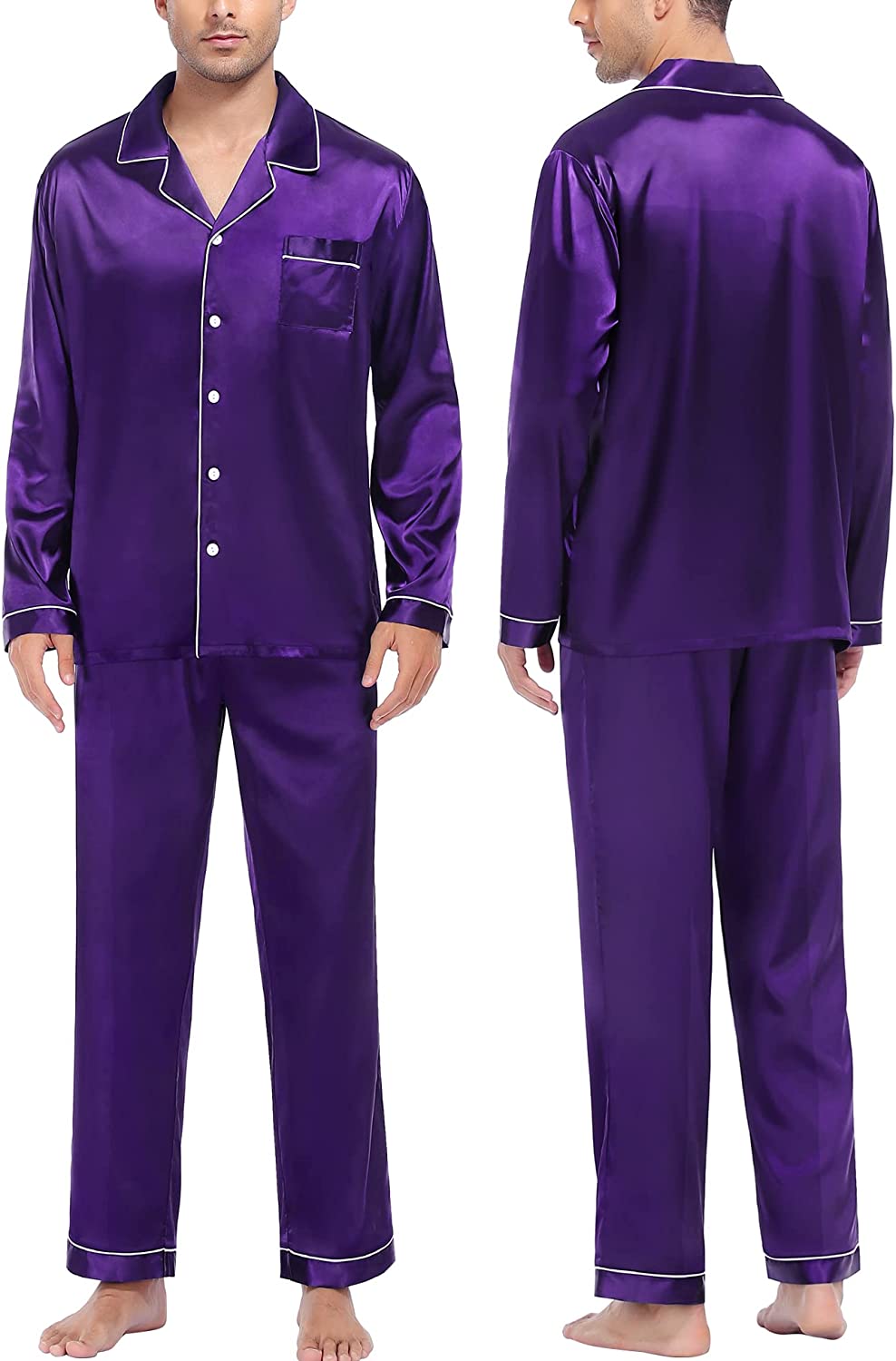 • OCCASION & BEST GIFT: Nicely tailored Satin Pajama sets are perfect for sleep, wedding, pajama party, and loungewear, or take a free walk in the park. On Halloween, Thanksgiving Day, Christmas, Father's day, a pajama set is the perfect present for your dad, husband, son, or boyfriend