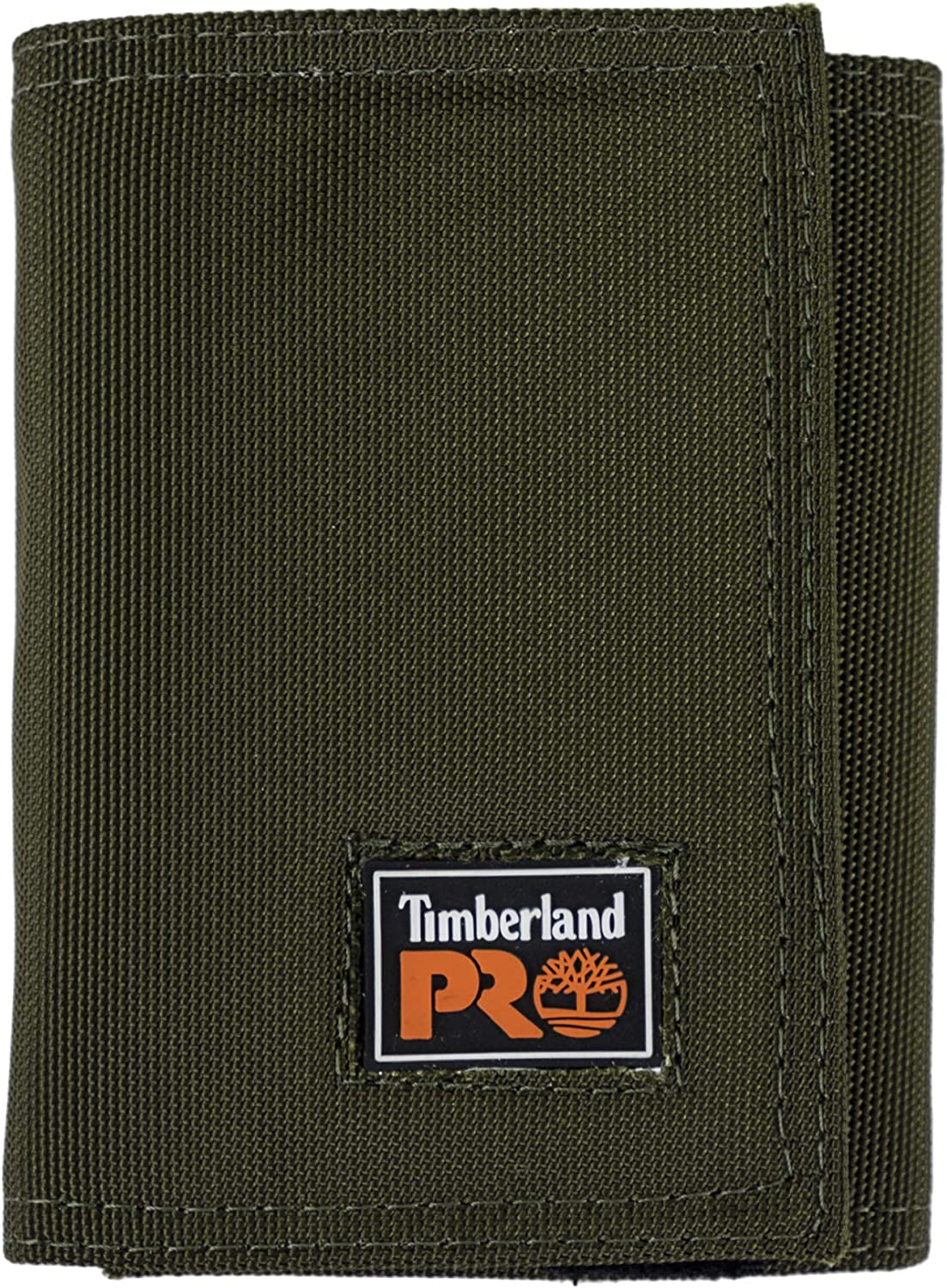 TIMBERLAND PRO CORDURA RFID BLOCKING TRIFOLD WALLET - A trifold wallet with lots of storage, 13 credit card pockets, 1 cash bill pocket, 1 ID window, RFID Protection, a Gift Box and a hook and loop closure.