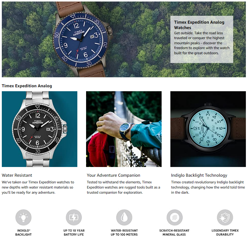 This clean, simple, military-inspired Timex Expedition Camper watch hasn't changed much since 1918. We made it a little lighter, added a nylon Fast Wrap strap with Velcro fastener, and our signature Indiglo night-light.