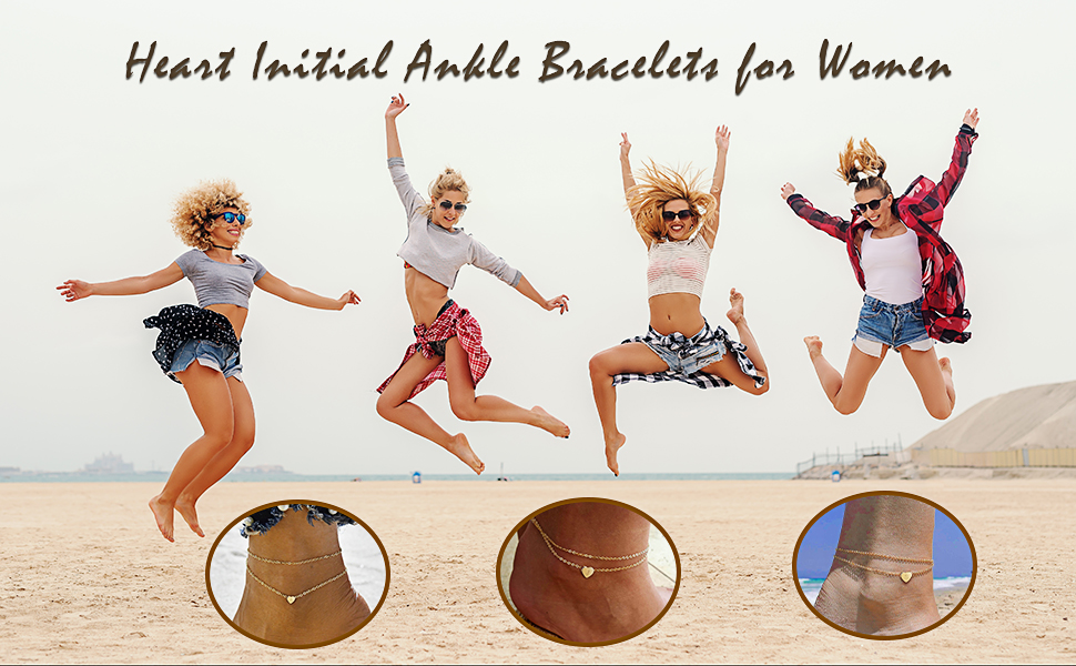 Turandoss Heart Initial Ankle Bracelets for Women, 14K Gold Filled Handmade Dainty Layered Anklet Letter Initial Heart Ankle Bracelets for Women Beach Jewelry Gifts(3292)