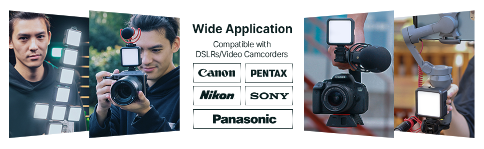 【HUE & Brightness & CCT Adjustable】Hue adjustable from 0 degree -359 degree; Brightness from 0%-100% dimmable; Color temperature from 2500K(warm) to 9000K(cold) dimmable. Led camera light built-in LCD display for accurate readings, let you work more effectively.