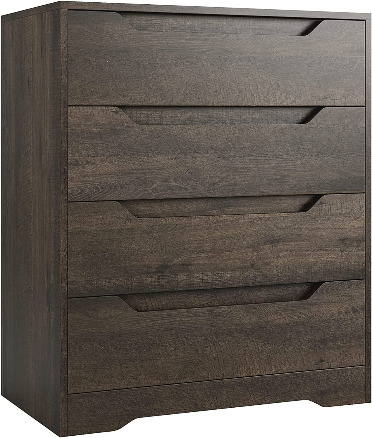 URKNO Modern 4 Drawer Dresser, Wood Chest of Drawers with Storage, Clothing Organizer with Cut-Out Handle, Storage Cabinet, Nightstand for Living Room, Bedroom, Hallway, Dark Brown(268)