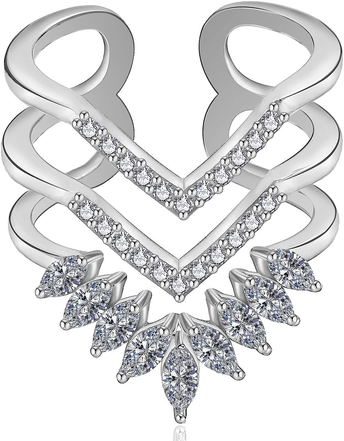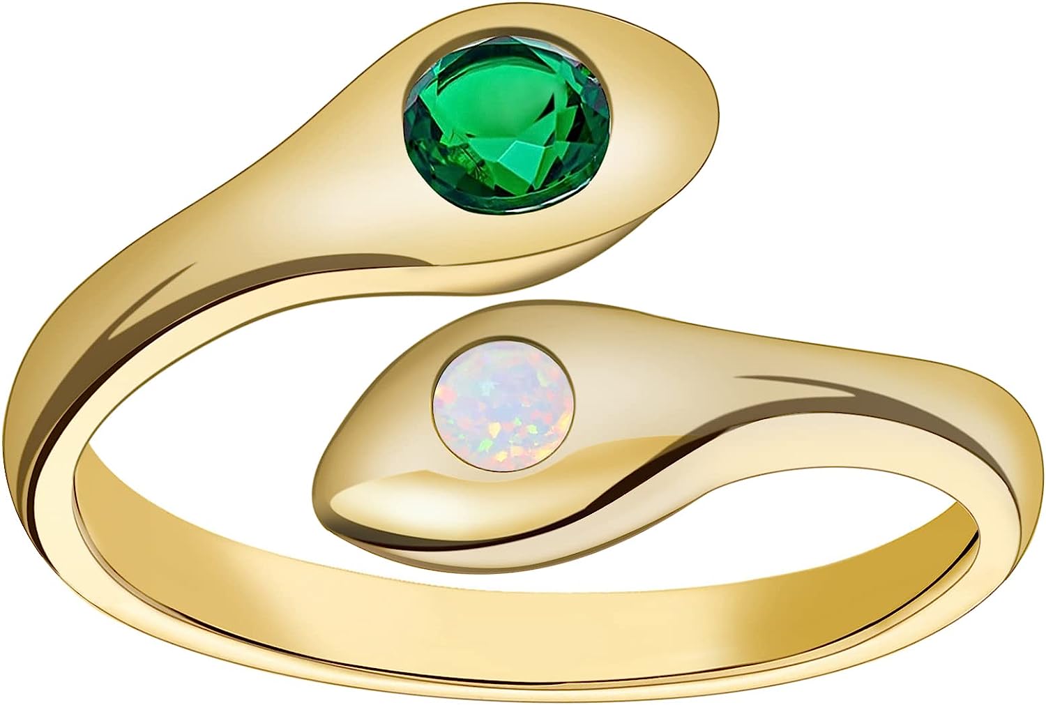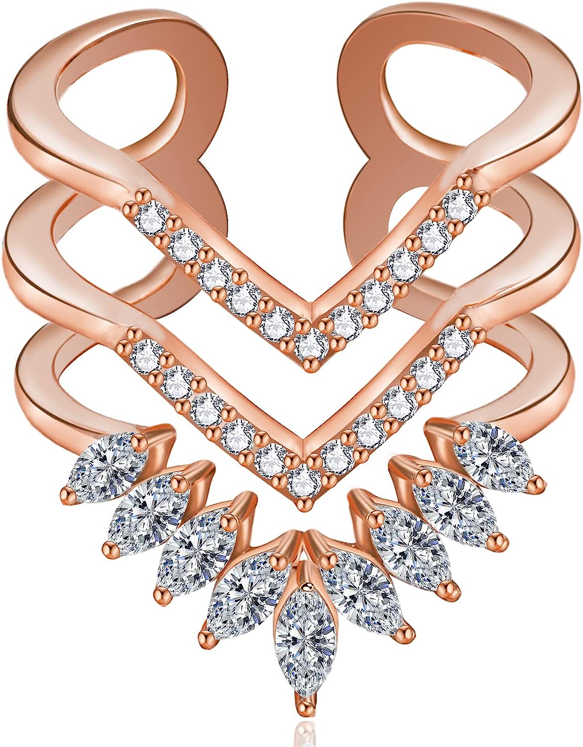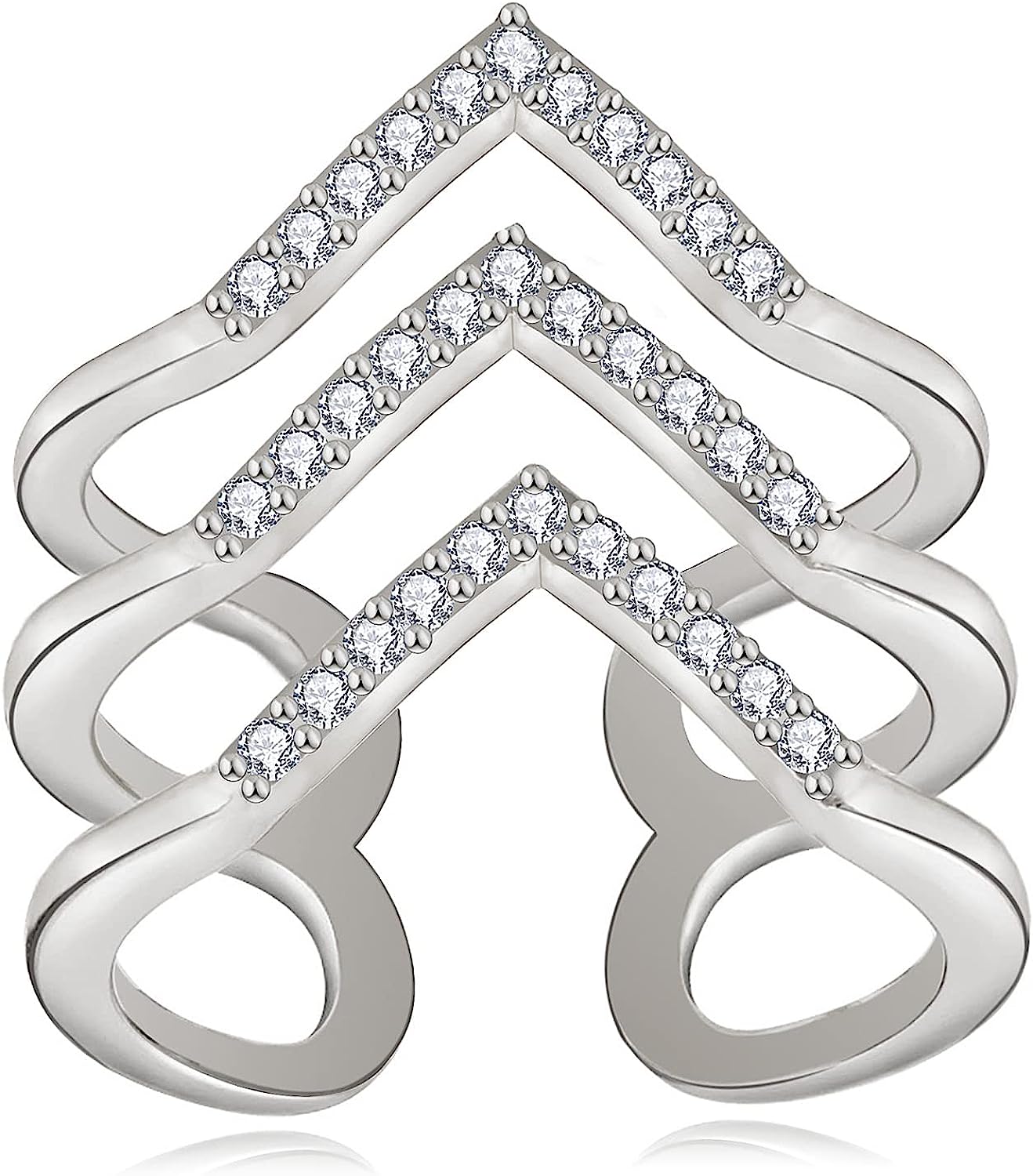 WeSparking Gold Rings for Women 14k Gold Plated Silver Dainty Adjustable Rings Evil Eye Snake Chevron Hug Knuckle Rings Band Simple Fake Diamond Finger Ring(3232)