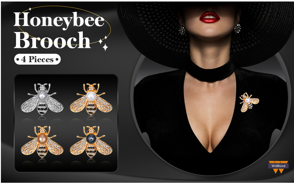 WILLBOND 4 Pieces Honey Bee Brooch Lapel Pins for Women Crystal Insect Themed Bee Brooches with Faux Pearl Fashion Gift for Birthday Dating Party Anniversary(3307)