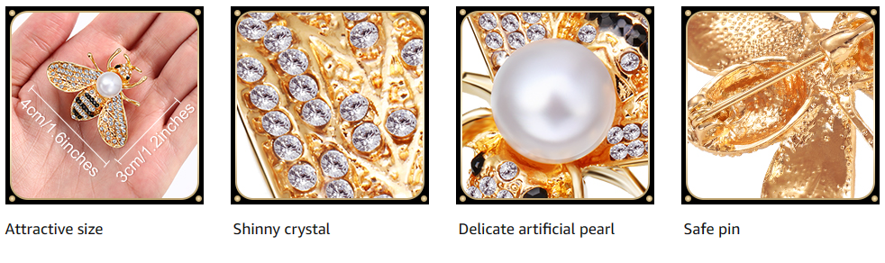 Quality alloy material: the bee pins are made of quality alloy and crystal, with exquisite plating, delicate, durable and not easy to fall off or tarnish, can accompany you for a long time
